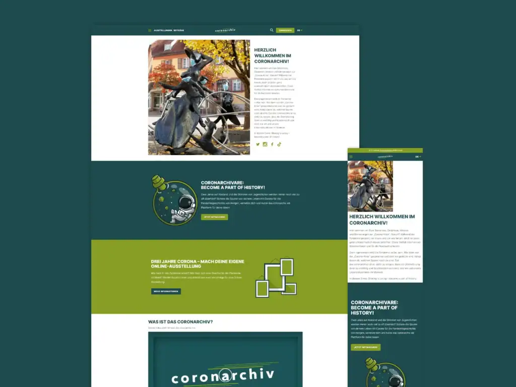 Das Ergebnis war das Coronarchiv, ein offenes Online-Archiv für persönliche Erinnerungen und Fundstücke zur Pandemie. Über ein Webformular konnten Menschen Tagebücher, Fotos, Audios oder Social-Media-Posts einreichen. Die Seite informierte über das Projekt, stellte das wissenschaftliche Team vor, dokumentierte Veranstaltungen und machte die eingereichten Beiträge durchsuchbar, filterbar und über eine interaktive Karte zugänglich.